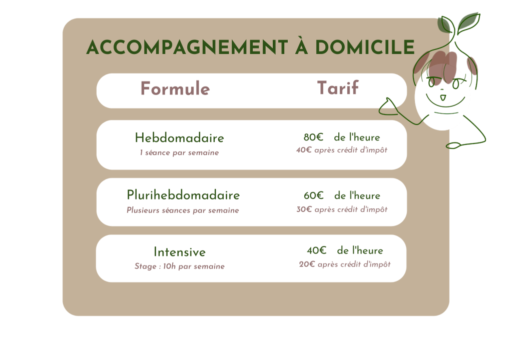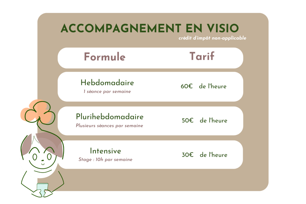 En revanche, et parce qu’un accompagnement ne devrait pas être une question de budget, nos tarifs sont dégressifs pour vous permettre de bénéficier d’autant d’heures que nécessaire.